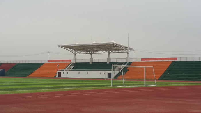 看臺上跑道、足球場(chǎng)全景
